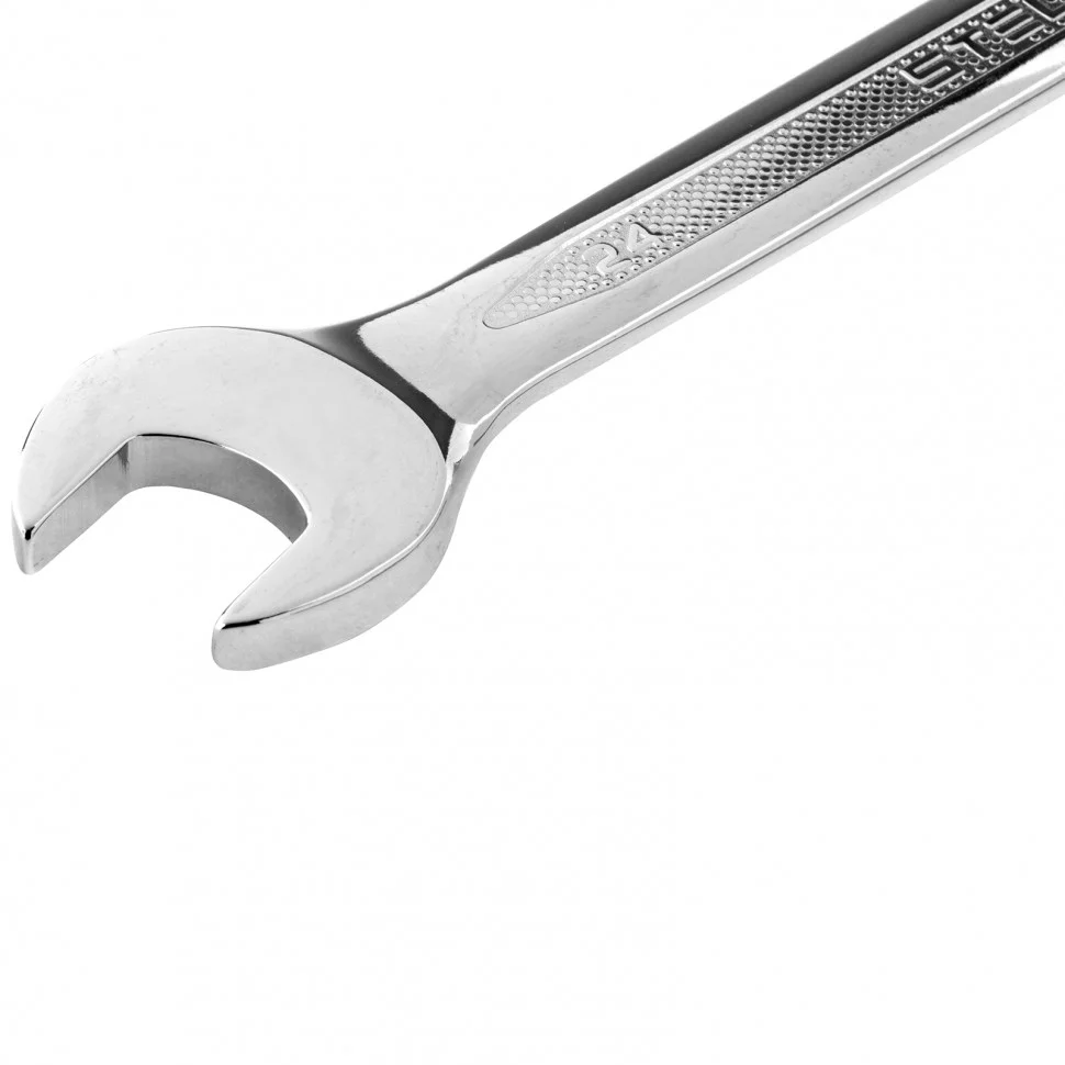 Комбинированный ключ Stels 15261 из стали CrV, 24 мм, антислип, позволяет откручивать и закручивать резьбовые соединения. Универсален в применении, т.к. имеет кольцевую и рожковую головки. 12-гранный профиль накидного зева обеспечивает увеличенную площадь контакта с поверхностью крепежа, что минимизирует вероятность его деформации. Ключ будет полезен в автомастерской, для монтажа и демонтажа оборудования, пригодится для работ по дому.ПреимуществаВысокий показатель прочности — инструмент изготовлен из стали хромованадиевой группы, твердость рабочей части составляет 42-50 HRC.Улучшенные антикоррозионные свойства и повышенная износостойкость благодаря хромированному покрытию.Удобство при выполнении монтажных работ — кольцевой зев смещен на 15 градусов относительно тела ключа.Надежный хват — благодаря рельефной поверхности ключ не скользит в руке.