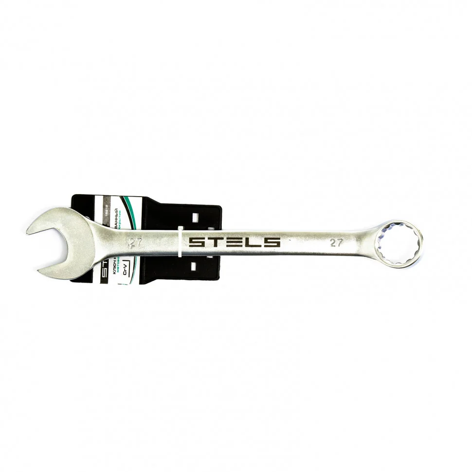 Ключ комбинированный, 27 мм, CrV, матовый хром Stels 15218