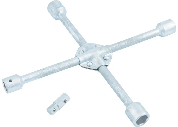 Усиленный баллонный ключ-крест Stels 14249 с переходником на 1/2"", под крепеж 17 х 19 х 21 х 22 мм, с толщиной прутьев 16 мм, предназначен для демонтажа и установки автомобильных колес. Несъемные шестигранные торцевые головки подходят для колесных гаек и болтов самых распространенных размеров. Ключ предназначен для использования в автоцентрах, для самостоятельного обслуживания автомобиля, пригодится также в поездке.ПреимуществаВысокий ресурс — инструмент изготовлен из углеродистой стали 45, рабочие части закалены до твердости 41 HRC.Равномерное воздействие на крепеж — прутья сварены под углом 90°.Увеличенный показатель прочности — толщина прутьев составляет 16 мм, в месте их сварки крестовина усилена специальными накладками.Широкие возможности применения — в комплект входит переходник с посадочным квадратом 1/2"", что позволяет использовать ключ с любыми торцевыми головками с соответствующим присоединительным размером.Защита от разрушения — на поверхность инструмента нанесено антикоррозийное покрытие.