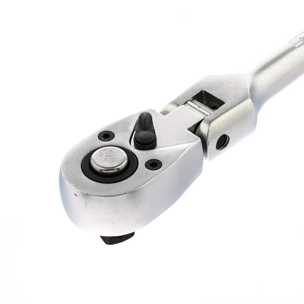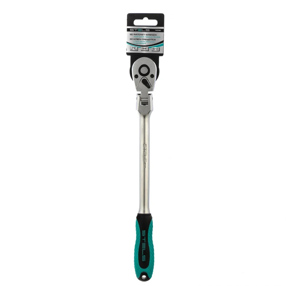 Шарнирный ключ-трещотка Stels 14045 из стали CrV, с 72 зубцами и быстрым сбросом, совместим с торцевыми головками, адаптерами и удлинителями с посадочным гнездом 3/8 дюйма. Предназначен для закручивания и раскручивания резьбовых соединений. Исключительная плавность хода обеспечивается 72-зубым храповым механизмом. Ключом можно работать в ограниченном пространстве — шаг трещотки всего 5 градусов. Инструмент будет полезен в сервисной мастерской, автотехцентре, а также дома, на даче или в поездке.ПреимуществаВысокий показатель прочности и износостойкости — ключ изготовлен из стали хромованадиевой группы.Долгий срок службы и защита от коррозии благодаря хромовому покрытию.Надежная фиксация насадки на присоединительном квадрате с шариком.Возможность не только закручивать, но и откручивать крепежи при помощи переключателя направления вращения.Работа в труднодоступных местах благодаря шарнирному креплению рабочей части.Быстрая замена насадок — ключ снабжен механизмом сброса.Комфорт при работе — эргономичная двухкомпонентная рукоятка удобно лежит в руке и не скользит.