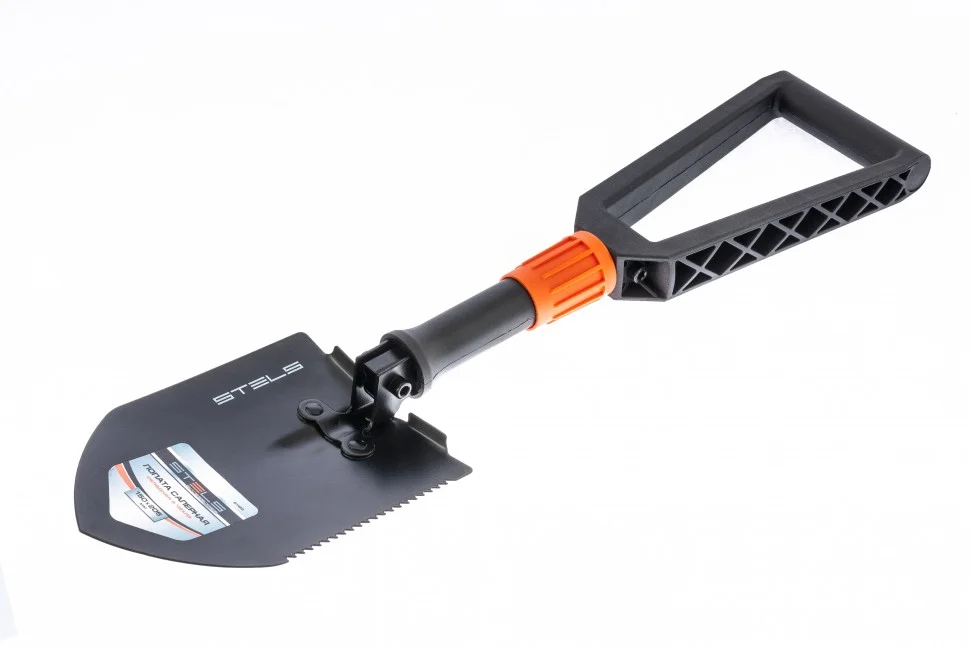 Складная походная лопата Stels 61462 размером 150 х 205 х 253-590 мм, с пластиковой рукояткой, в чехле, пригодится садоводу, автомобилисту и туристу для проведения земляных работ. Благодаря складной конструкции может выступать в качестве мотыги. Лопата легко проникает в землю за счет закругленного края верхней кромки рабочего полотна.ПреимуществаПрочность и долговечность — рабочее полотно выполнено из среднеуглеродистой стали и закалено до необходимой твердости.Защита от коррозии — рабочая часть имеет порошковое покрытие, предотвращающее разрушение под воздействием влаги.Продуманная конструкция — полотно клиновидной формы устойчиво к нагрузкам, а стальной цанговый механизм не позволяет лопате складываться во время работы.Надежность — широкая пластиковая рукоятка с ребрами жесткости выдерживает высокие нагрузки.Компактность — вес лопаты составляет 770 г, а длина в сложенном виде — 253 мм, поэтому она помещается как в багажник авто, так и в походный рюкзак.Удобная транспортировка и хранение — в комплект поставки входит непромокаемый чехол с подвесом.