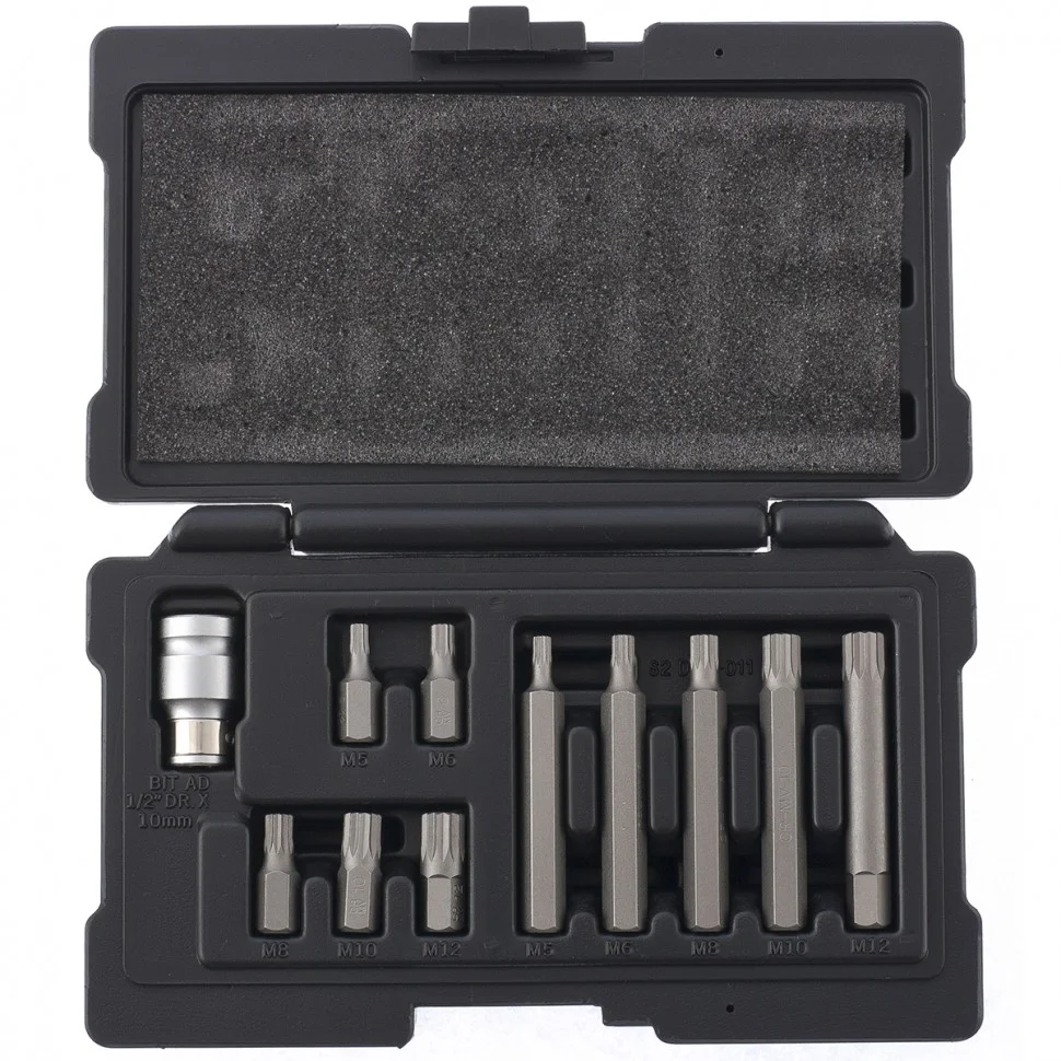 - Удобное хранение и транспортировка — набор поставляется в кейсе с ложементом с указанием размера бит.