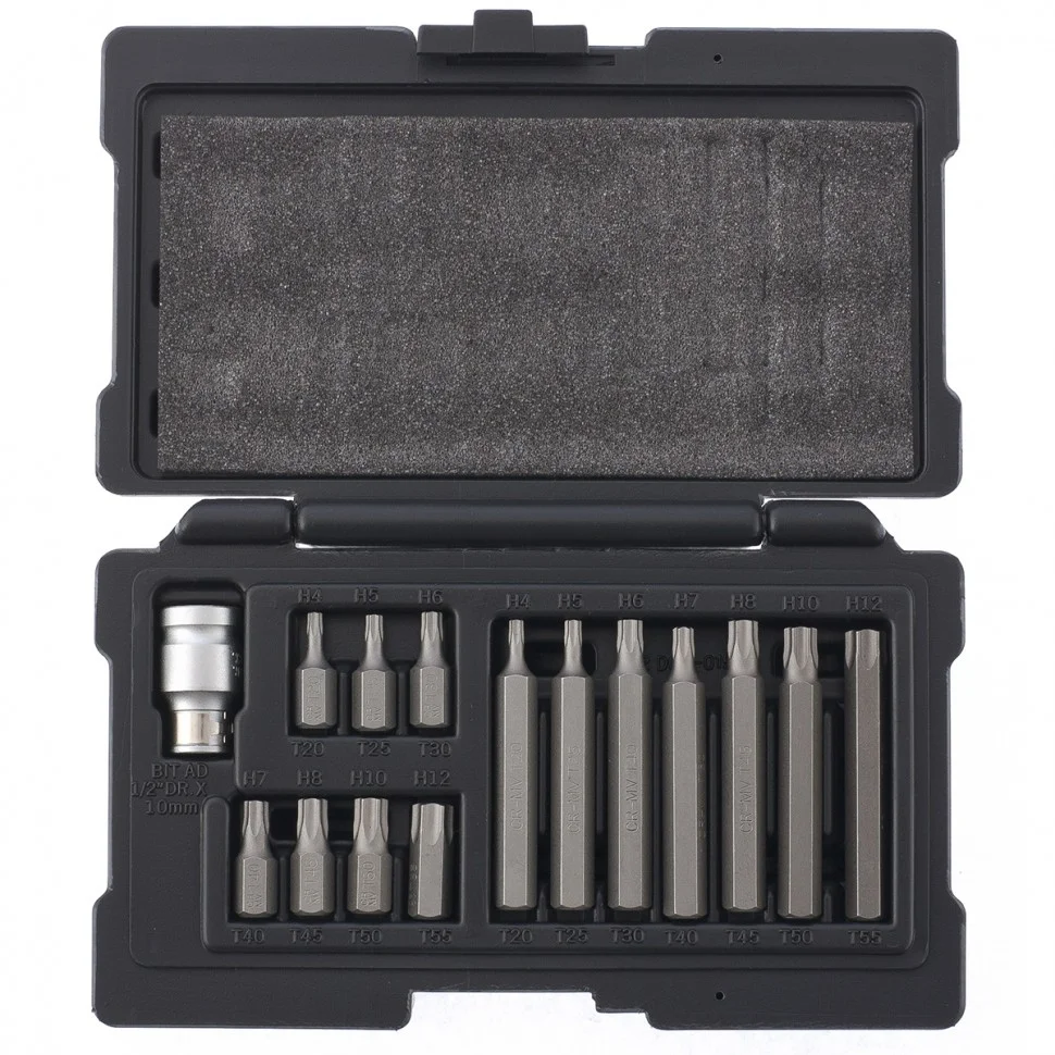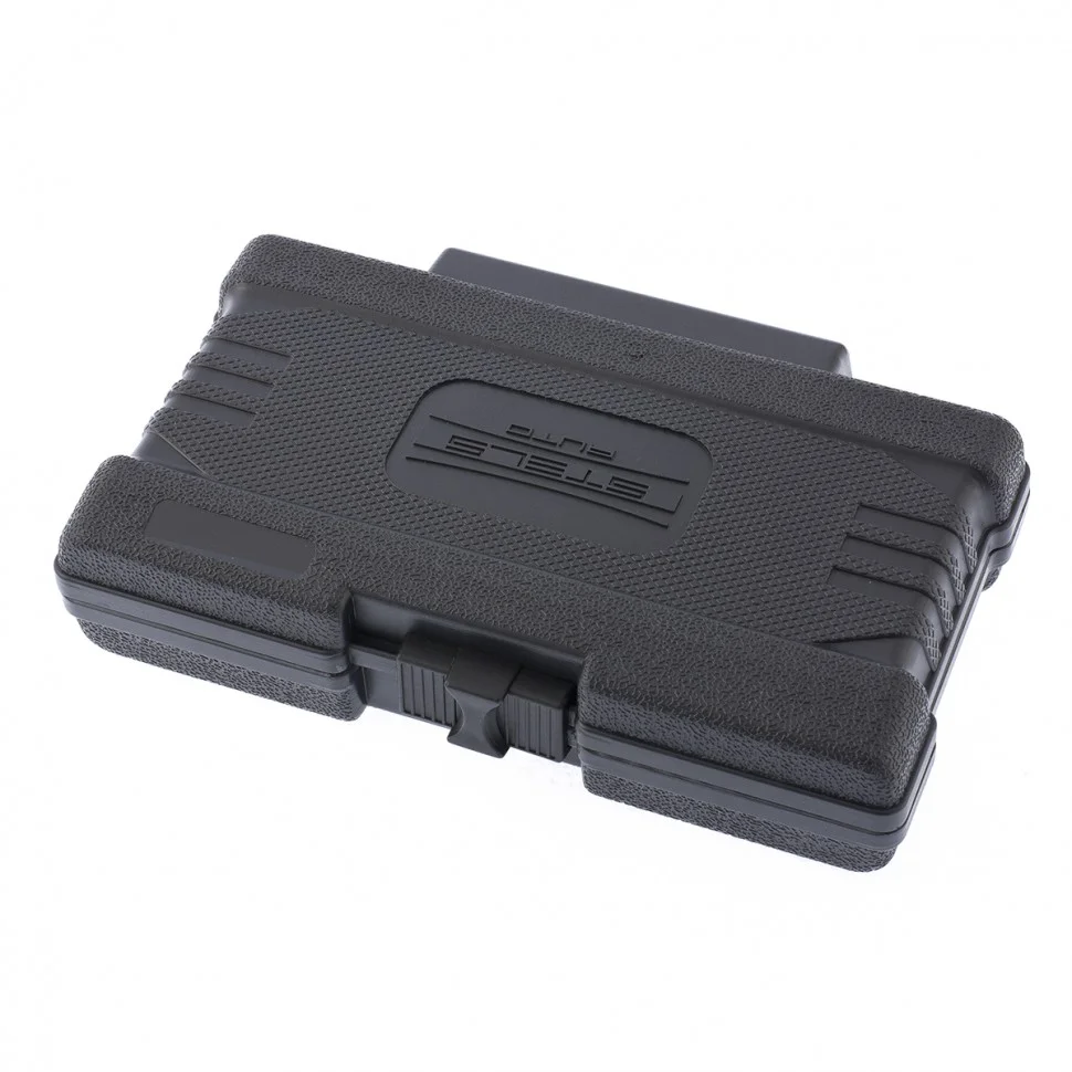 Набор бит Stels TORX с шестигранным хвостовиком 1/2'' арт. 11315 состоит из 15 насадок Т20, Т25, Т30, Т40, Т45, Т50, Т55 длиной 35 мм и 75 мм, а также переходника. Шлиц в форме звезды используется совместно с ключом трещоткой, пневматической трещоткой или пневматическим гайковертом. Он оптимально подходит для работы с крепежными элементами типа TORX при сборке и ремонте автомобилей.ПреимуществаБиты из хромованадиевой стали твердостью 50-53 HRC отличаются повышенной износостойкостью, поэтому прослужат долго.Переходник позволяет устанавливать биты 1/2" на инструменты с посадочным размером 3/8".Удобная система хранения и транспортировки — биты поставляются в кейсе с ложементами с указанием размера.