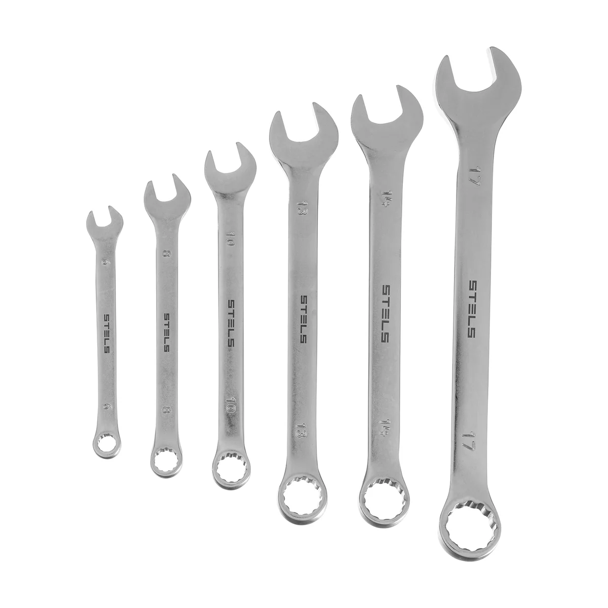 Набор ключей комбинированных 6-17 мм, 6 шт., CrV, матовый хром Stels 15442