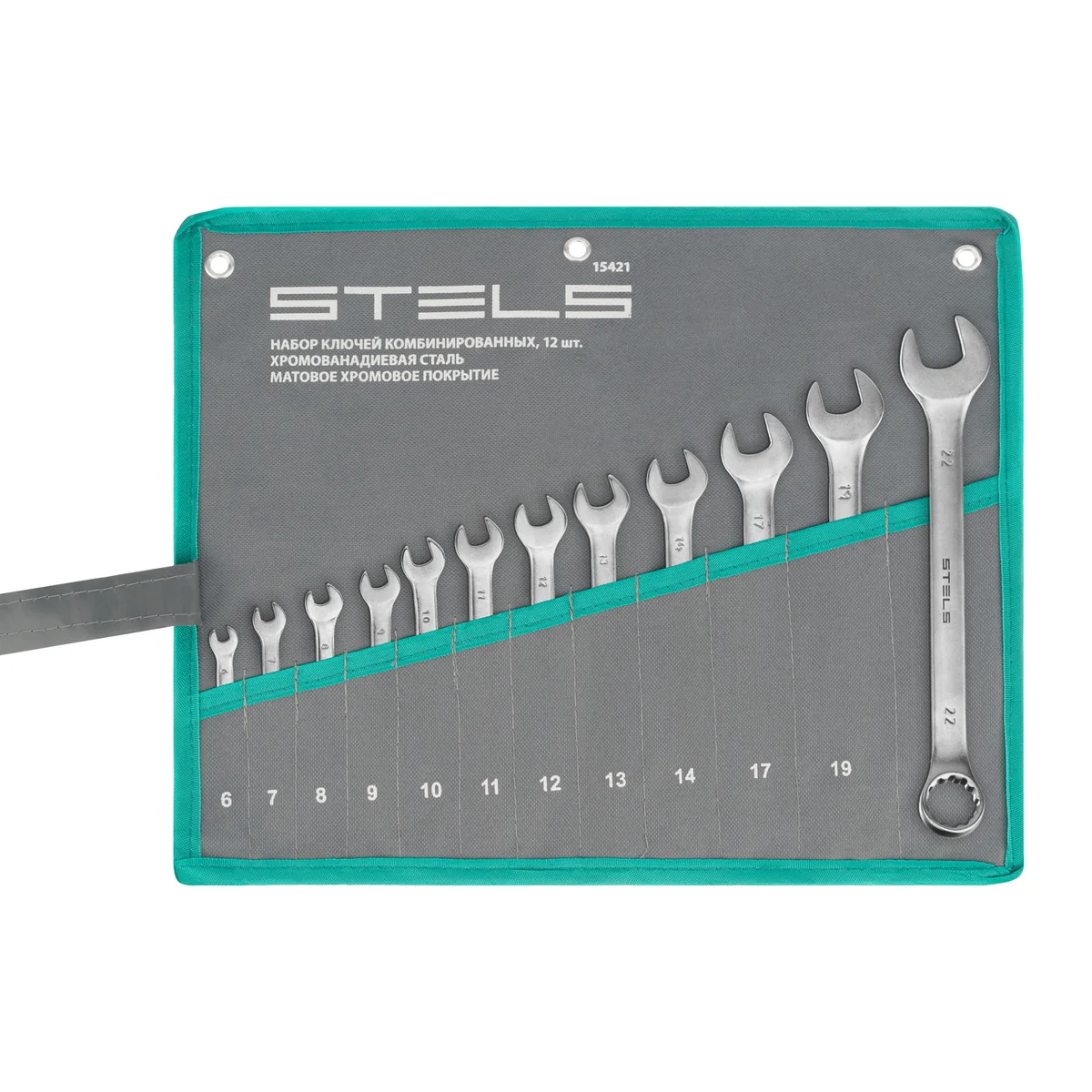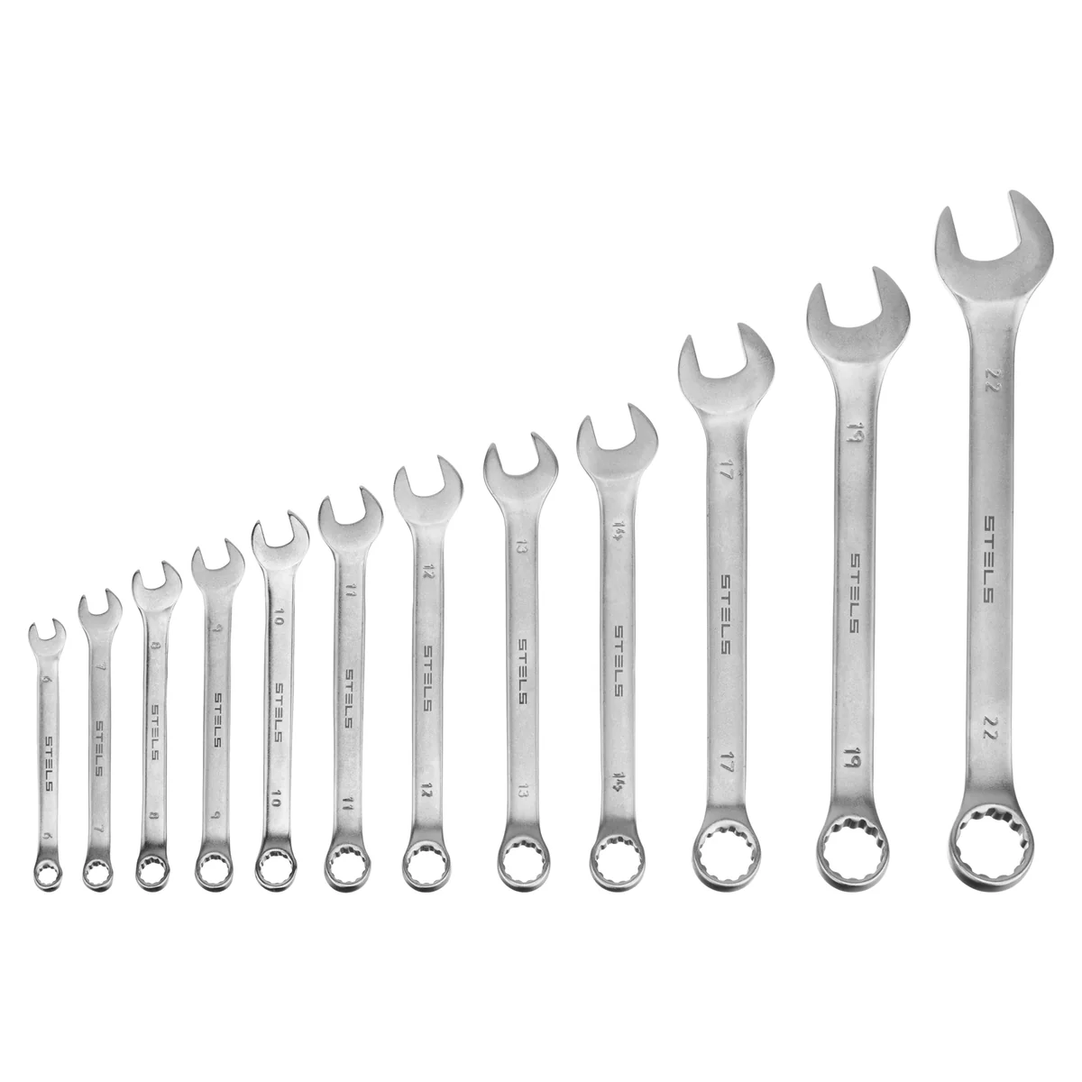 Набор ключей комбинированных 6-22 мм, 12 шт, CrV, матовый хром Stels 15421