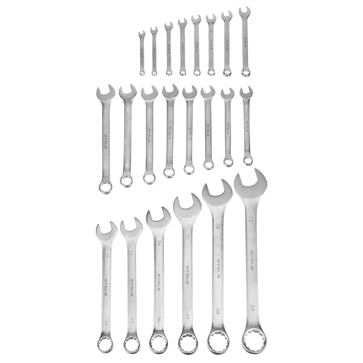 Набор ключей комбинированных 6-32 мм, 22 шт, CrV, матовый хром Stels 15423
