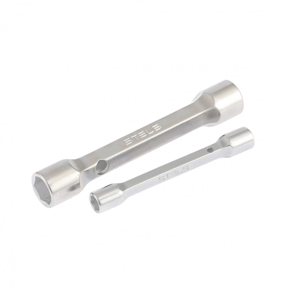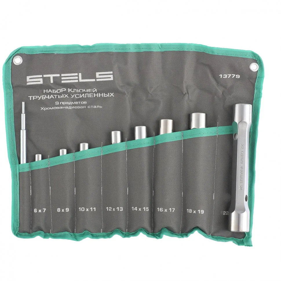 Набор удлиненных торцевых ключей-трубок Stels 13779 содержит 9 предметов из стали CrV и рассчитан на профессиональное применение. Он позволяет проводить монтаж/демонтаж болтовых соединений, шпилек и другого крепежа, прикладывая значительные усилия. Продуманная форма ключей позволяет осуществлять работы в труднодоступных местах.ПреимуществаНабор включает 8 двусторонних ключей основных размером 6-24 мм для работы с различным крепежом.В комплект входит поворотный стержень для удобства работы с ключами.Хромованадиевая сталь придает ключам твердость и устойчивость к механическим нагрузкам.Защитное матовое покрытие не допускает образования коррозии на ключах.Благодаря усиленной конструкции ключи легко выдерживают интенсивные нагрузки.Сумка с индивидуальными кармашками обеспечивает удобство хранения и транспортировки ключей.
