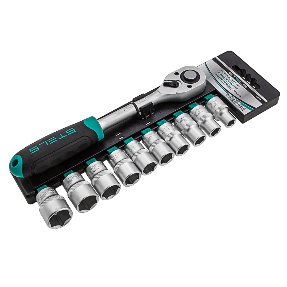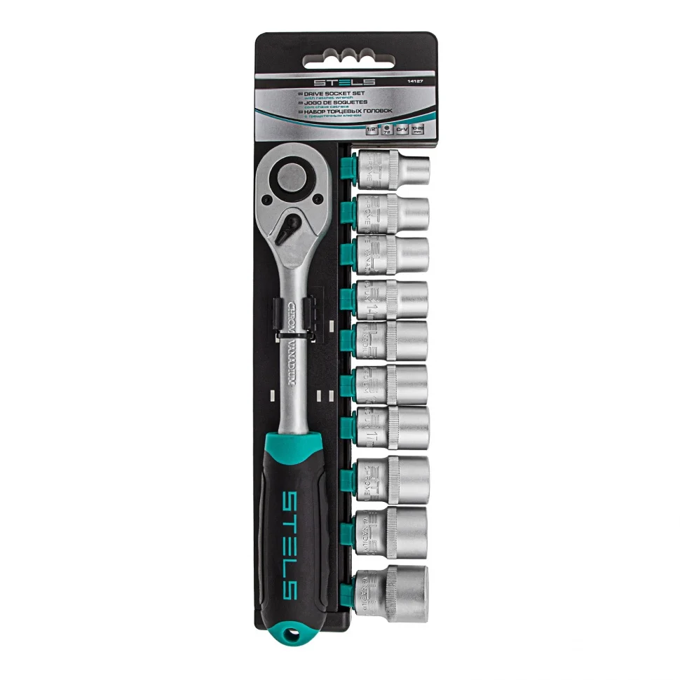 Набор Stels 14127 из стали CrV включает в себя 11 предметов: торцевые головки 10-22 мм с присоединительным размером 1/2 дюйма и трещоточный ключ. Он используется для закручивания и откручивания крепежных элементов, пригодится при ремонте крупногабаритной техники и обслуживании авто. Инструменты выдерживают высокие нагрузки и могут использоваться в ограниченном пространстве.ПреимуществаВысокий ресурс — корпус трещотки и головок изготовлен из хромованадиевой стали.Защита от коррозии — на металлические части нанесено матовое хромоникелевое покрытие.Плавное вращение — трещотка с 72 зубьями удобна для работы в труднодоступных местах.Механизм быстрого сброса — можно легко менять насадки для переключения между задачами.Надежная фиксация оснастки — присоединительный квадрат трещотки оснащен шариковым держателем.Комфортная работа — двухкомпонентная эргономичная рукоятка надежно лежит в руке.Удобное хранение — набор поставляется с компактным пластиковым держателем.
