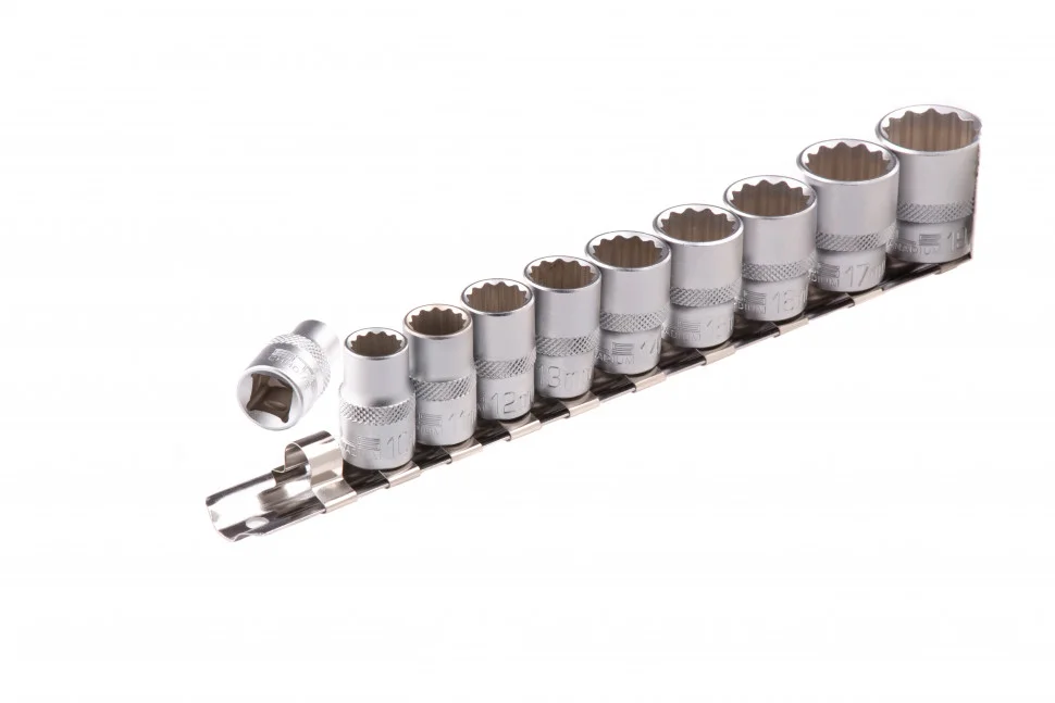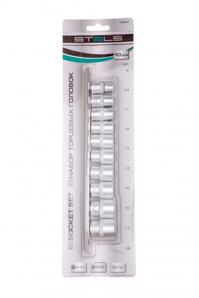 Набор торцевых головок Stels 13607 содержит 10 12-гранных насадок 9-19 мм из стали CrV, с посадочным размером 3/8 дюйма. Торцевые головки используются с трещотками, воротками и гайковертами для откручивания и закручивания гаек, болтов и других крепежных элементов. Насадки выдерживают интенсивные нагрузки, поэтому набор незаменим для техобслуживания авто и ремонтных работ дома и на даче.ПреимуществаПрочность и высокий ресурс — головки выполнены из стали хромованадиевой группы.Аккуратная работа — 12-гранный зев обеспечивает увеличенную площадь контакта с крепежом, что снижает риск его деформации при высоких нагрузках.Удобная работа в ограниченном пространстве — за счет 12-гранного зева головки позволяют вращать крепеж с меньшим углом поворота (30 градусов), чем модели с 6-гранным зевом.Защита от коррозии — на головки нанесено матовое хромоникелевое покрытие.Удобное хранение — в комплект входит металлическая плашка-держатель.