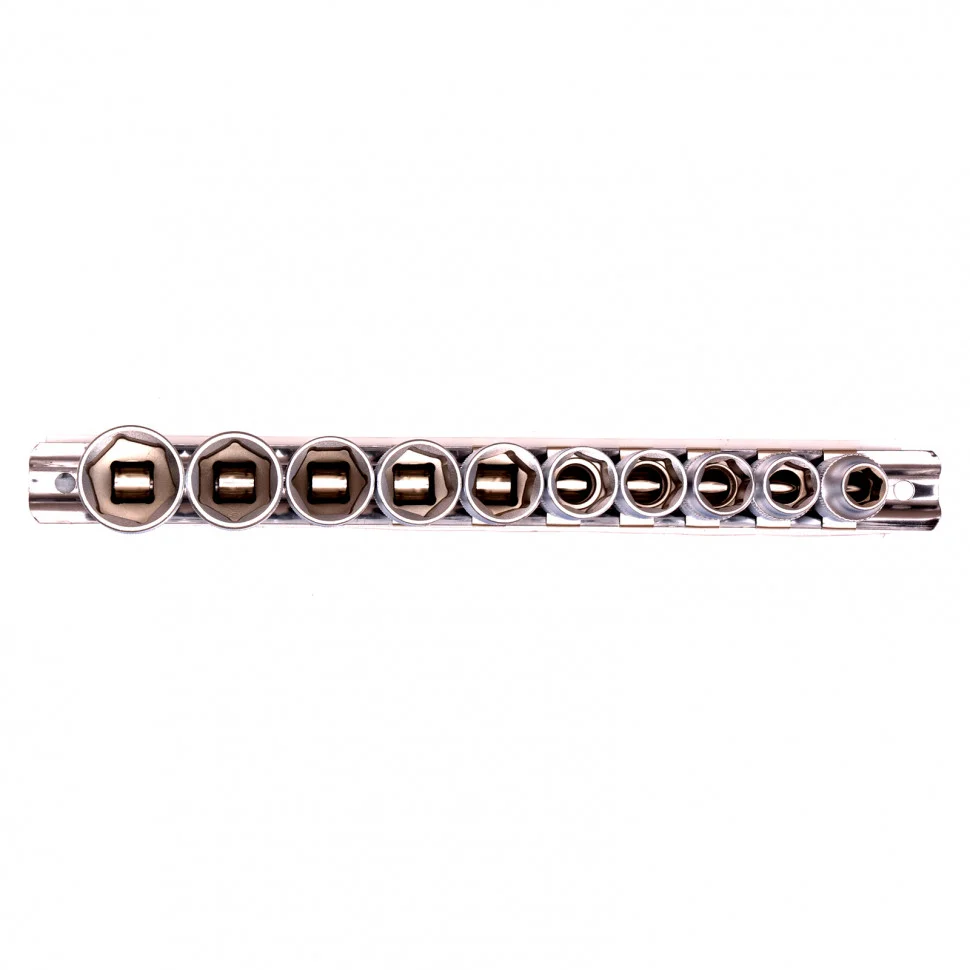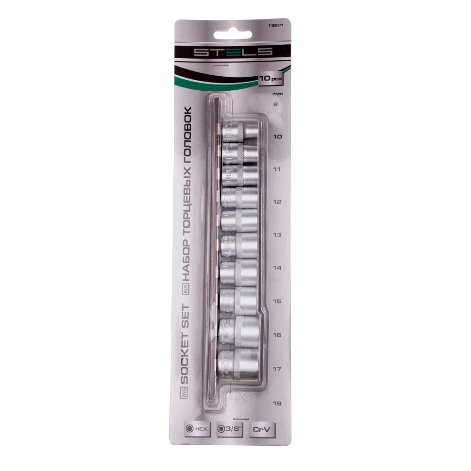 Набор 6-гранных торцевых головок Stels 13601 из стали CrV включает в себя 10 насадок 8-19 мм с присоединительным размером 3/8 дюйма. Он пригодится для ремонта крупногабаритной техники и обслуживания авто. Торцевые головки выдерживают высокие нагрузки, поэтому подходят для профессионального применения.ПреимуществаВысокий ресурс — корпус головок изготовлен из прочной хромованадиевой стали.Защита от разрушения — матовое хромоникелевое покрытие предохраняет головки от коррозии.Удобное хранение — насадки поставляются с металлической планкой-держателем.