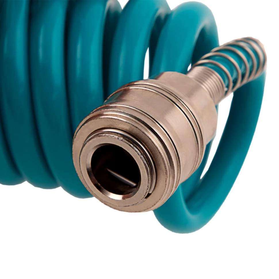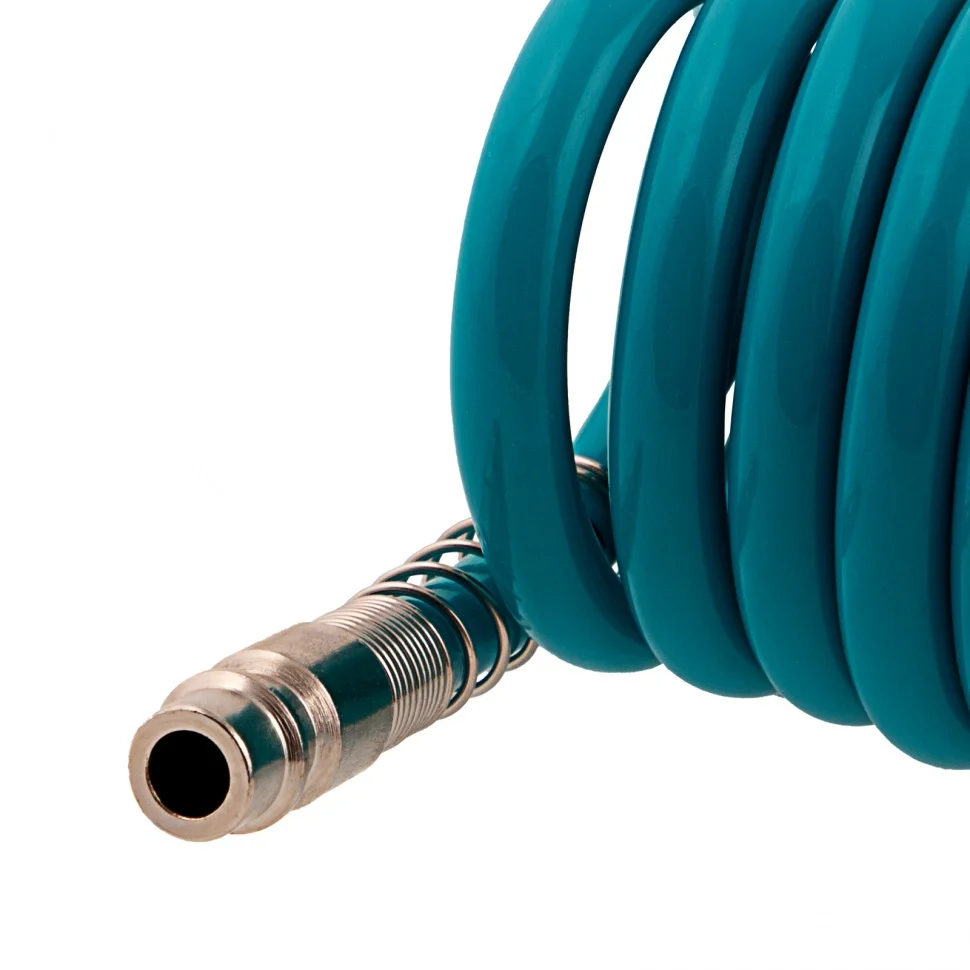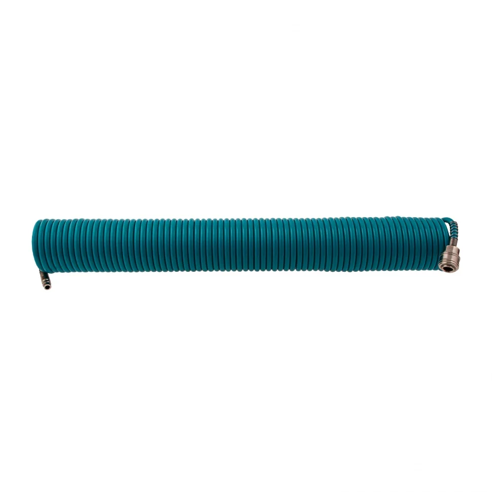 Профессиональный полиуретановый спиральный шланг Stels 57009 из сырья BASF, длиной 15 м, с быстросъемными соединениями, предназначен для подключения пневматического оборудования. Длина 15 м позволяет работать на значительном удалении от компрессора. Благодаря увеличенной толщине рукав выдерживает давление до 24 бар, поэтому подходит для мощного компрессорного оборудования. Используется в строительстве и на производственных предприятиях.ПреимуществаРукав изготовлен из полиуретана, сочетающего легкость, прочность и устойчивость к перепадам температур, поэтому выдерживает интенсивное применение.Быстроразъемные соединения типа рапид позволяют быстро отключать шланг от компрессора и менять пневмоинструменты, что экономит время мастера.Шланг выполнен в виде спирали, поэтому не создает помех во время работы, а после ее окончания принимает исходную форму.Антикоррозийное покрытие защищает штуцер и муфту от ржавчины, что продлевает срок их службы.