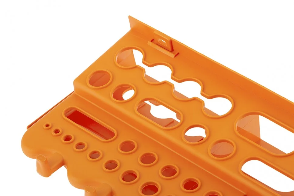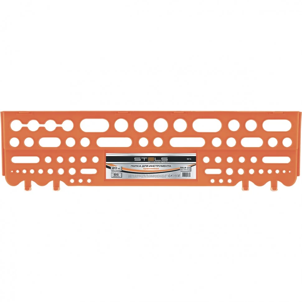 Оранжевая полка Stels 90715 длиной 625 мм позволяет организовать место для практичного и компактного хранения инструментов. На ней можно разместить рабочий инвентарь и всегда держать необходимые предметы под рукой. За счет настенного крепления полка обеспечивает возможность подвесного хранения.ПреимуществаДолговечность и надежность — полка выполнена из высококачественного полипропилена.Прочная и надежная конструкция — полка легко выдерживает нагрузку до 20 кг.Большая длина 625 мм и индивидуальные отверстия под инструменты — на полке можно разместить до 65 предметов.