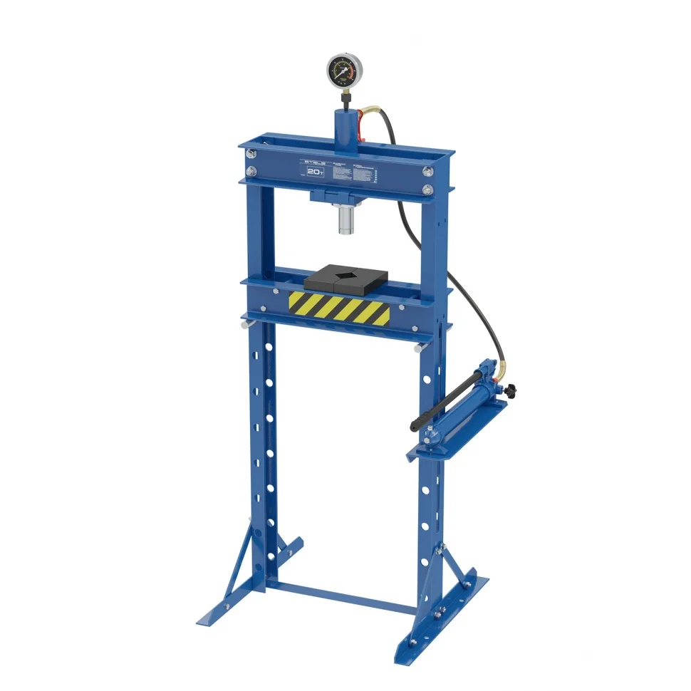 Гидравлический пресс Stels 52303 с манометром поставляется комплектом из 2 частей и способен развивать усилие до 20 т. Его используют для запрессовки и выпрессовки подшипников, втулок, сайлентблоков, штифтов и других деталей. Для контроля давления предусмотрен глицеринозаполненный манометр. Высококачественный гидравлический насос с ручным приводом обеспечивает плавный ход штока. Пресс будет полезен в автосервисе или гараже.ПреимуществаПресс изготовлен из прочного металла, элементы конструкции имеют аккуратные сварные швы, что обеспечивает долговечность оборудования.Высота подъема рабочего стола регулируется, поэтому можно работать с деталями различного размера.Шток можно перемещать по горизонтали, что позволяет добиться его точного позиционирования.Поверхность штока хромирована, что защищает его от коррозии.Предохранительный клапан предотвращает превышение максимально допустимого давления, поэтому работа с прессом безопасна.При спуске давления шток автоматически возвращается в исходное положение, что экономит время и силы мастера.Пресс изготовлен на высокоточном оборудовании и прошел строгий контроль качества, что гарантирует его надежность.