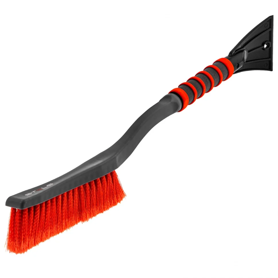 Щетка-сметка для снега со скребком Stels 55303 длиной 580 мм используется для чистки автомобиля в зимний период. Она не царапает лакокрасочное покрытие, поскольку ее щетина имеет распушенные кончики. Щетка со скребком пригодится автолюбителям.