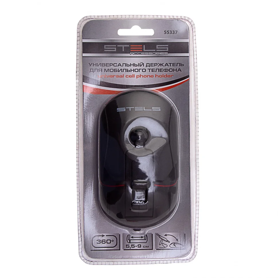 Универсальный держатель мобильного телефона Stels 55337 предназначен для использования в автомобиле. Позволяет с удобством просматривать карты, пользоваться различными приложениями, включать любимую музыку и фильмы в дороге. Ширина рабочей части регулируется в диапазоне 5,5-9 см, поэтому держатель подходит практически для всех моделей смартфонов.ПреимуществаУниверсальность — можно зафиксировать мобильный телефон от любого производителя.Регулировка угла наклона — основание поворачивается на 360 градусов, что позволяет расположить телефон максимально удобно.Быстрая фиксация — телефон крепится в держателе одной рукой за несколько секунд.Надежность — изделие прочно фиксируется на приборной панели с помощью вакуумной присоски, что исключает риск падения телефона.Защита от царапин — мягкие зажимы не портят телефон даже при сильном сжатии.Долговечность — благодаря ударопрочному ABC-пластику держатель устойчив к механическим повреждениям и преждевременному износу.Компактность и интересный дизайн — изделие будет выигрышно смотреться в любом автомобиле, а при неиспользовании его можно сложить.Устойчивость к перепадам температур — держатель сохраняет работоспособность и не разрушается как в мороз, так и в жаркую погоду (от -30 до +70 градусов Цельсия).Удобная упаковка — двойной блистер позволяет рассмотреть товар перед приобретением, а также обеспечивает его безопасное хранение.