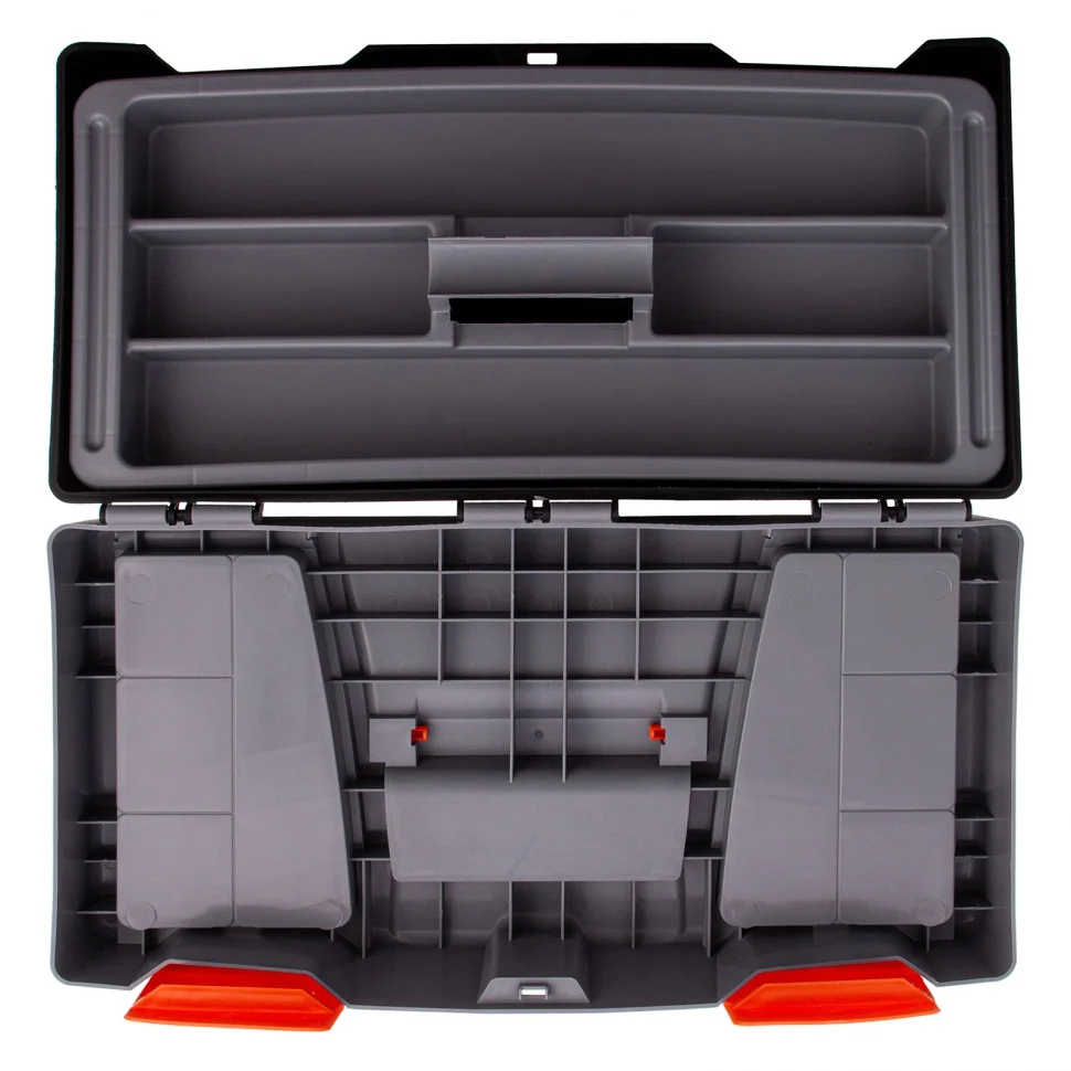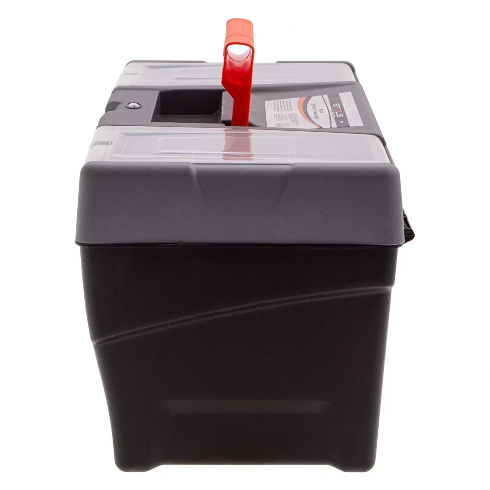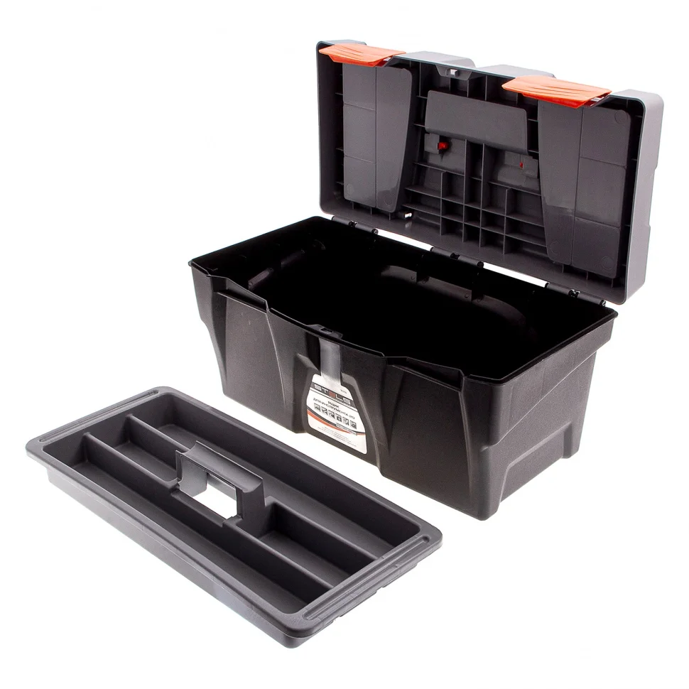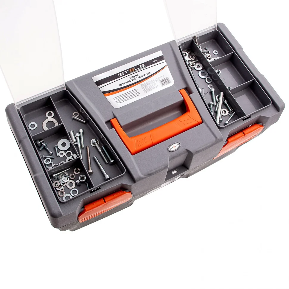 Ящик для инструмента Stels 90705, 20 дюймов, габаритами 500 х 260 х 260 мм, из пластика, предназначен для переноски и хранения инструментов, хозяйственных мелочей, рыболовных снастей. Содержимое не рассыпется, поскольку он надежно закрывается. Встроенные в крышку отделения обеспечивают быстрый доступ к крепежам и другим необходимым предметам. Большой ящик для хранения инструментов будет полезен дома, на даче, в гараже и на рыбалке.ПреимуществаЯщик выполнен из прочного и легкого пластика, рассчитан на долгий срок службы.На крышке предусмотрена ручка, облегчающая транспортировку контейнера.В ящике имеется съемный лоток, что позволяет удобно расположить инструменты разного размера, а также крепежи и мелкие детали.