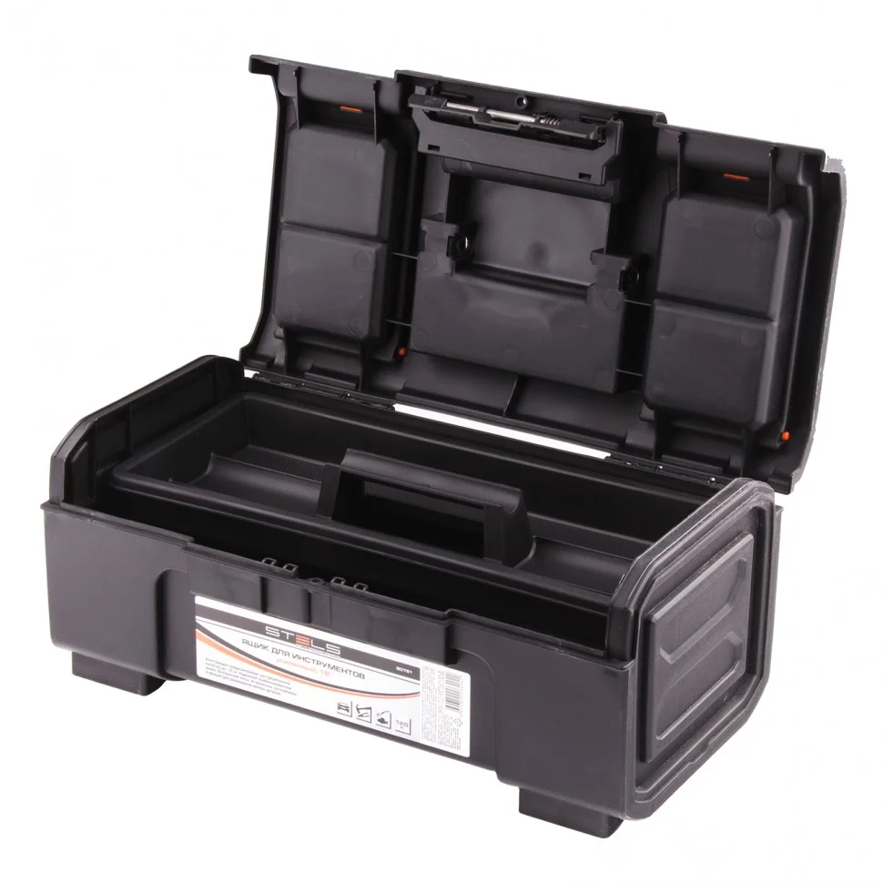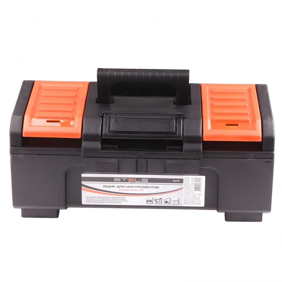 Усиленный ящик для инструментов Stels 90761, 16 дюймов, используется для хранения и транспортировки ручного и электроинструмента, а также хозяйственных мелочей или рыболовных принадлежностей. Заменяет коробку для инструментов, а также может служить рыболовным ящиком. Пригодится дома, в поездке, а также в гараже или на даче.ПреимуществаКорпус выполнен из прочного пластика и выдерживает распределенную нагрузку на крышку до 120 кг.Контейнер для хранения рассчитан на размещение инструментов общей массой не более 20 кг, поэтому в него можно сложить много предметов.Ящик надежно запирается, поэтому можно не опасаться, что он случайно откроется во время транспортировки.Замок легко открывается одной рукой, что делает использование ящика более комфортным.В крышке имеются органайзеры, поэтому крепежи и мелкие детали всегда будут под рукой.Широкая ручка облегчает транспортировку ящика с инструментами.В комплект поставки входит съемный лоток с ручкой, в трех секциях которого можно разместить мелкие инструменты, оснастку и другие предметы.Опорные ножки исключают риск случайного опрокидывания ящика.