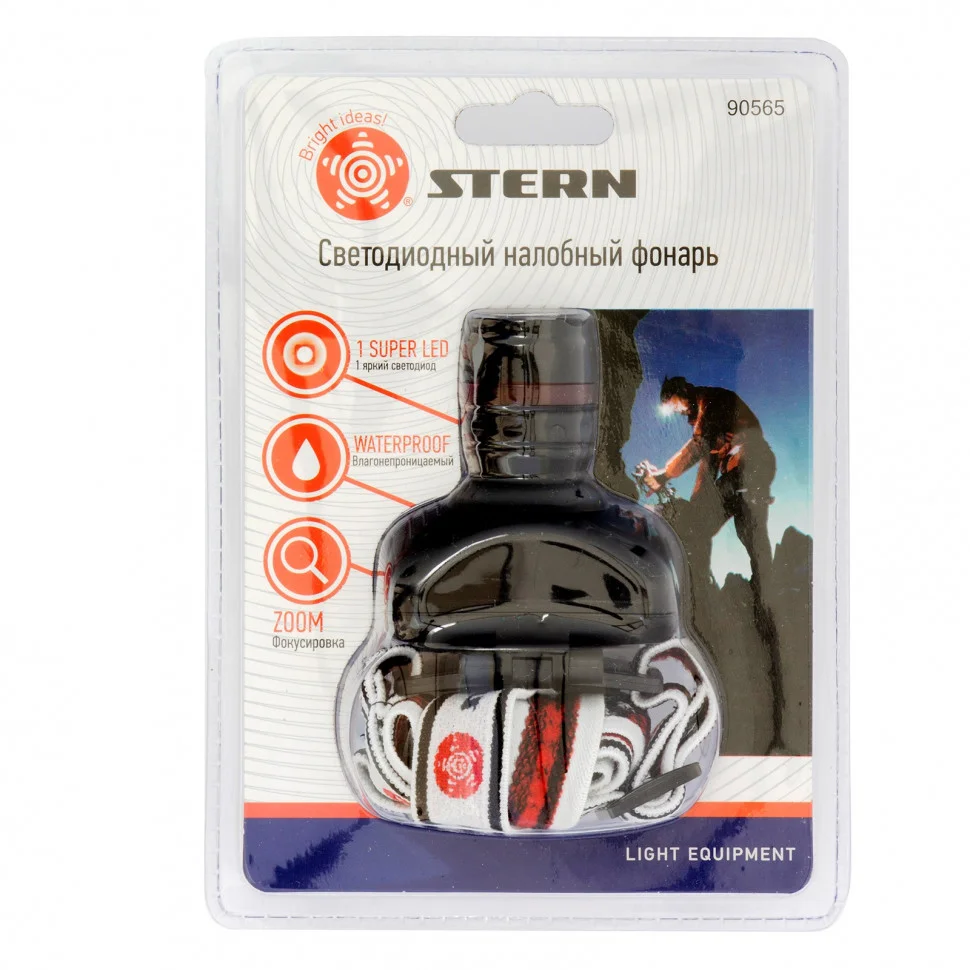 Фонарь наголовный с возможностью зумирования луча, светодиодный, 1 super Led, 3 х ААА Stern 90565
