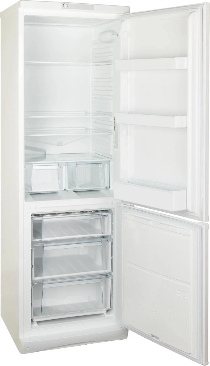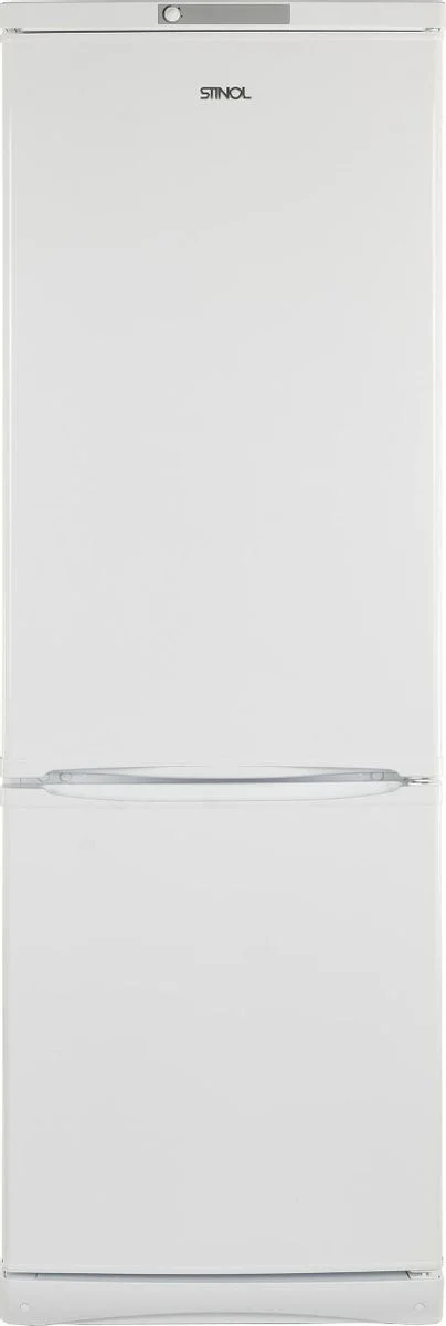 Холодильник двухкамерный Stinol STS 185 — устройство с нижней морозильной камерой. Выполнен в белом цвете, имеет серебристый корпус.