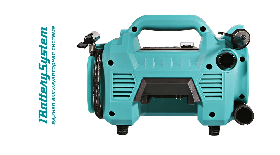 Аккумуляторный компрессор, в целях экономии, поставляется без аккумулятора и зарядного устройства. Вы можете использовать один аккумулятор данной системы для нескольких инструментов или использовать аккумулятор от шуруповерта с логотипом 1BatterySystem.