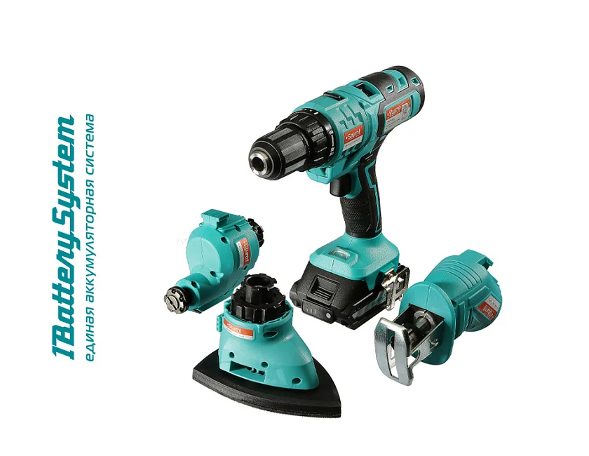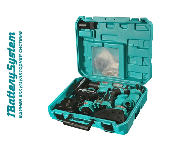 • Мультифункциональность 4 в 1 — совмещение функций четырех инструментов: шуруповерта, сабельной пилы, реноватора и шлифмашины позволяет существенно расширить возможности применения.
