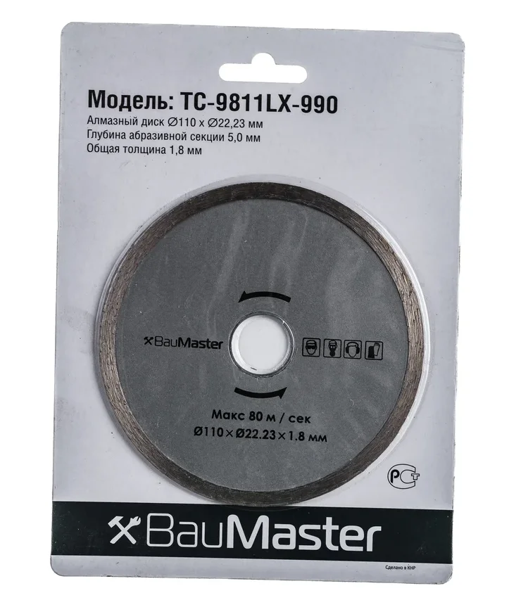 Алмазный диск BauMaster, диам. 110x22.23 мм, сплошной TC-9811LX-990