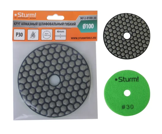 Алмазный гибкий шлифовальный круг, 100 мм, P30, сухое шлиф., 1 шт. Sturm! 9012-D100-30