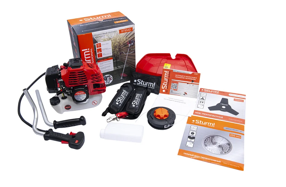 Бензотриммер Sturm! 43 см3, 1,3 кВт/1,8 лс, диск 80 зуб/леска/ранц.рем/эрг.рук./ред.сб BT9543