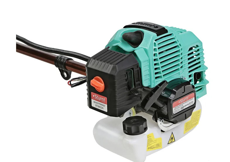 Sturm BT8852N — современная и надежная бензиновая коса для обработки приусадебных территорий больших площадей (более 1000 м2). Благодаря производительному бензиновому двухтактному двигателю, прямой неразъемной штанге с жестким валом внутри и мощному угловому редуктору модель является универсальной и позволяет выполнять различные задачи: инструмент уверенно справляется не только со скашиванием мягкой и жесткой переросшей травы, но и эффективен при работе с зарослями кустарников, при условии установки соответствующей оснастки, а также может использоваться в тандеме с культиваторными насадками для обработки почвы. Для обеспечения высокого ресурса бензокосы особое внимание уделено наиболее важным элементам конструкции: усилена цилиндро-поршневая группа и коленвал, установлена электронная система зажигания и карбюратор, обеспечивающий стабильность работы при различных температурных условиях, улучшена система охлаждения двигателя. Легкость запуска инструмента гарантируют механизм облегченного старта с дополнительной пружиной и праймер. Модель удобна в эксплуатации — снабжена Т-образной рукоятью «велосипедного типа»: она обеспечивает лучший контроль и позволяет при работе захватывать большую площадь за один заход. Для оптимальной настройки бензокосы под конкретного пользователя конструкцией предусмотрена возможность продольной регулировки как рукояти, так и проушины крепления ремня. В расширенную штатную комплектацию Sturm BT8852N помимо режущей оснастки (косильная головка, фреза) включен ранцевый ремень, способствующий снижению нагрузки на позвоночник оператора, за счет ее равномерного распределения.