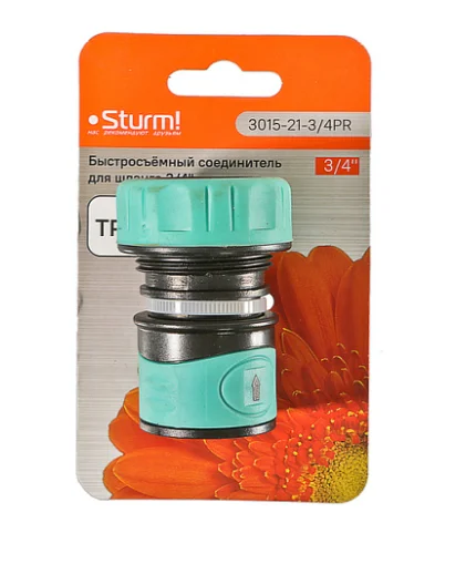 Быстросъёмный соединитель для шланга 3/4", с аквастопом Sturm! 3015-21-3/4AS