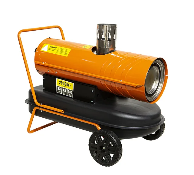 Дизельная тепловая пушка непрямого нагрева DKH20CH предназначена для работы как при строительстве или ремонте в производственных помещениях и на открытых площадках, так и в жилых помещениях. Модель оснащена теплообменником из высококачественной нержавеющей стали марки, разделяющим зоны горения топлива и нагрева воздуха. Благодаря данному трехходовому теплообменнику, КПД работы теплогенератора достигает уровня до 85%. Тепловая мощность - 20 кВт тепла, а производительность 560 м3/ч. Уникальная конструкция позволяет отводить продукты сгорания за пределы обогреваемого помещения. Для максимальной безопасности пушка оснащена системой защиты от перегрева, контролем стабилизации пламени.