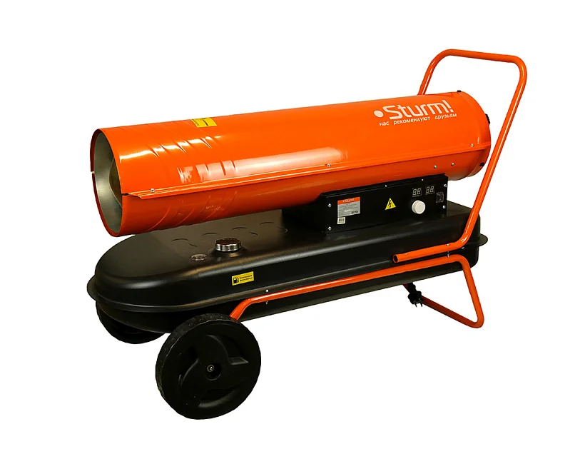 Тепловая дизельная пушка Sturm! DKH50 – мощный обогреватель с объемом бака 43 литров. Форма корпуса моделирует направленный горячий поток воздуха при обогреве нежилых помещений и открытых рабочих пространств даже в самых суровых климатических условиях. Уровень КПД прибора близок к 100%, а тепловая мощность достигает 50 кВт. Тепловая пушка оснащена встроенным термостатом повышенной чувствительности для работы в автономном режиме с поддержанием заданной температуры и цифровым дисплеем - указателем температуры. Теплоотражающий стальной экран поддерживает равномерный нагрев. Максимальная безопасность и контроль обеспечивается с помощью электронной платы управления, температурного датчика.