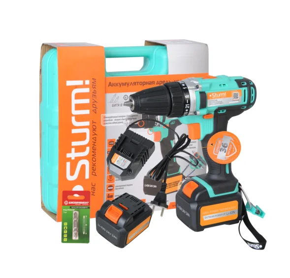 Дрель аккумуляторная Sturm!, 24В, 35Нм, конусный патрон, 2х2.0Ач, ЗУ, кейс CD3224L