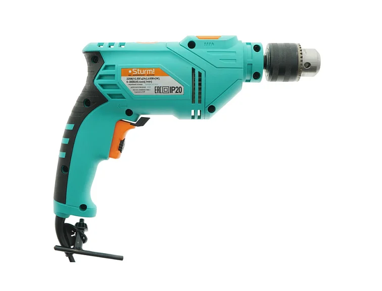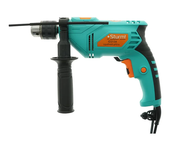 Sturm ID2154 - односкоростная универсальная дрель классической компоновки для бытового применения. Обладая небольшими габаритными размерами и массой модель идеально подходит для решения задач, где от инструмента требуется компактность: например, при необходимости засверливания отверстий в условиях ограниченного пространства, либо на высоте. За счет хорошо продуманной эргономики дрель максимально удобна в использовании: прорезиненные накладки основной рукояти и возможность установки дополнительной рукояти в любом угловом положении способствуют надежности хвата, размещенные непосредственно под пальцами флажковый переключатель реверса и регулятор количества оборотов, гарантируют простоту управления, исключая лишние движения. Предусмотрена фиксация клавиши пуска – дополнительное подспорье при непрерывном использовании. Модель оснащена производительным 650 Вт электромотором, развивающим скорость вращения на валу шпинделя до 2800 об / мин – достаточный запас по мощности способствует высокой эффективности сверления в материалах различной твердости. Важной особенностью дрели Sturm ID2154 является наличие ударного механизма, позволяющего работу с твердыми, но хрупкими материалами (керамика, керамогранит), без риска их повреждения. При необходимости, для повышения производительности, режим удара можно задействовать при сверлении отверстий в кирпичной кладке и легком бетоне. Диаметр шейки корпуса под европейский стандарт - 43 мм – обеспечивает возможность установки дрели в сверлильную стойку.