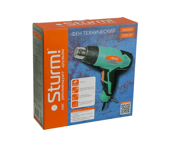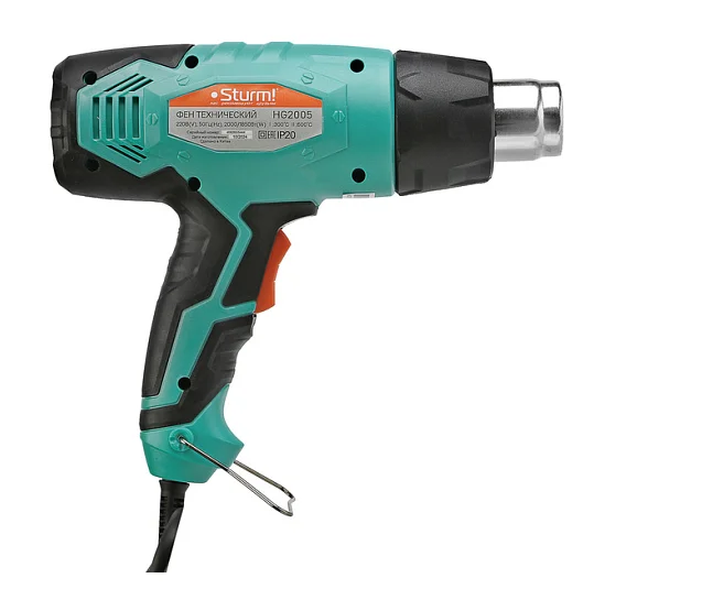 Два режима нагрева для различных задачПрорезиненная рукоятка для комфортного хватаНабор из 4 насадок для максимальной реализации функционала фена и скребок для снятия краски в комплектеСкоба у основания рукоятки позволяет подвешивать фен в подсобных помещениях для хранения
