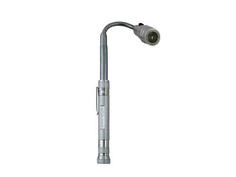 Наличие двух магнитов дает вам возможность прикрепить фонарь к любому металлическому предмету, а регулируемая головка позволит направить луч света именно туда, куда вам нужно! Ваши руки останутся свободны. Так же с помощью телескопической (удлиняющейся на пол метра) рукоятки и магнита на лицевой части фонаря, вы с легкостью сможете доставать упавшие металлические предметы из трудно доступных мест!