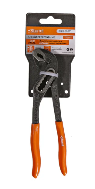Клещи переставные, 175мм, зев 31мм, коробчатый шарнир, CrV сталь, Sturm! 1020-07-175