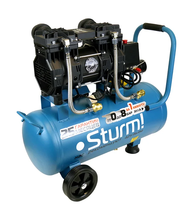 Компрессор безмасляный Sturm! 1,5кВт, 240 л/мин,ресивер 24л., бесшумный, "профи" AC93224OL
