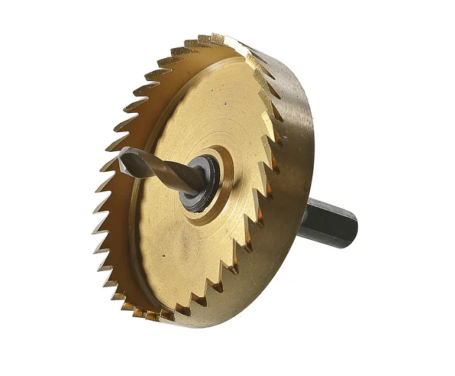 Коронка биметаллическая с зубьями из быстрорежущей стали Р6М5. Обладает высоким ресурсом и позволяет сделать ровный и точный рез. Предназначена для резки тонколистового металла (сталь, нержавеющая сталь).