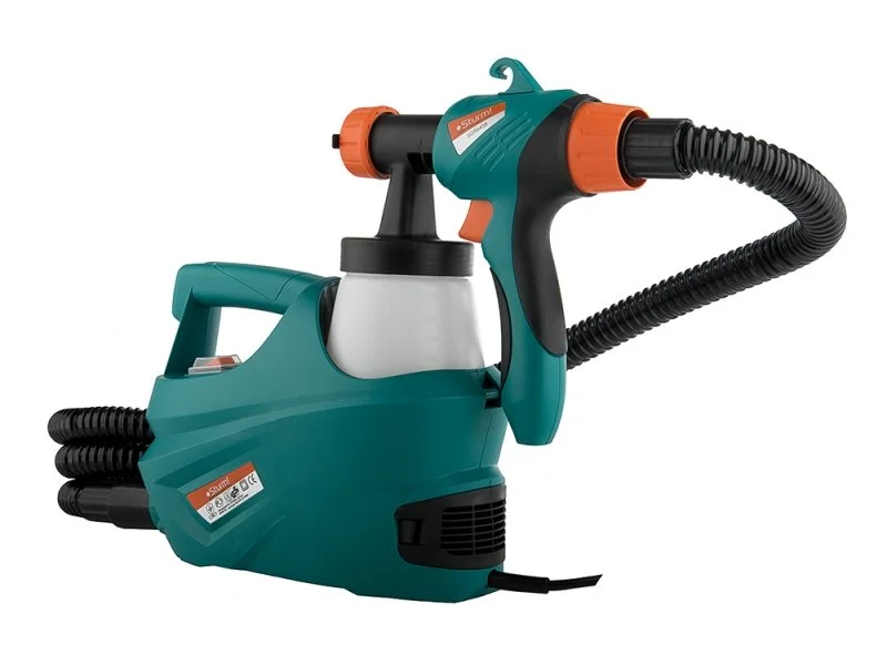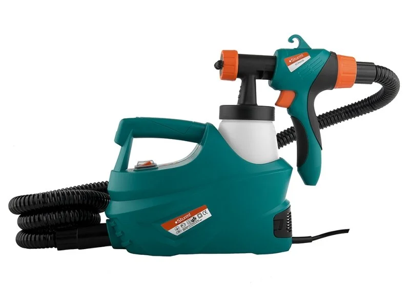 Краскопульт Sturm! SG9645B - производительное, удобное в эксплуатации устройство для внутренних и наружных окрасочных работ. Предназначен для работы с быстросохнущими красками на водной основе, лаками и полировками, может использоваться в авторемонтных мастерских, в судостроении и судоремонте, а также при производстве бытовых покрасочных работ. Коллекторный двигатель мощностью 450 Вт с турбиной, установленный на краскопульте Sturm! SG9645B, выполненный по технологии подачи большого объема воздуха при малом давлении, дает возможность быстро и качественно выполнить большой объем работ. Возможность ручной регулировки расхода краски непосредственно при окраске повышает качество и снижает расход жидкости. Бачок 0,6 л обеспечивает длительную непрерывную работу. В краскопульте Sturm! SG9645B установлен воздушный фильтр, препятствующий попаданию пыли внутрь, легкий доступ к фильтру дает возможность быстро его очистить при необходимости. Относительная компактность и небольшой вес (2,4 кг) делают устройство удобным в работе и транспортировке.