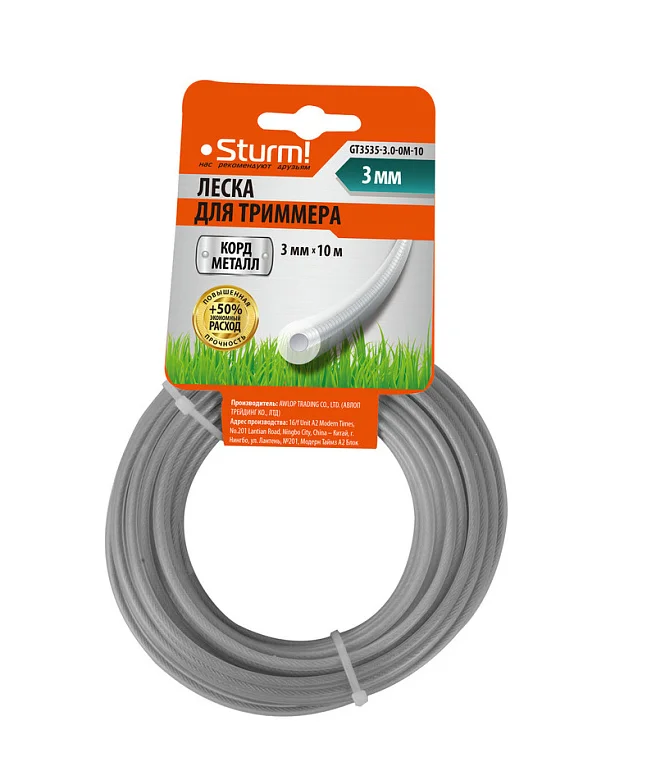 Первичный полиамид гарантирует высокую износостойкость, а металлический стержень работу в тяжелых условиях, таких как сухие толстые стебли сорняков, камыш, мелкие кустарники.