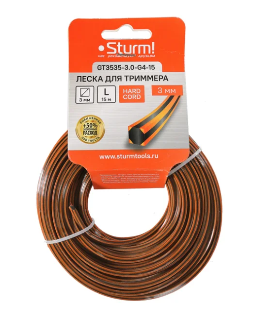 Леска для триммера, d=3.0 мм, l=15 м, квадрат усилен., оранж./черн. Sturm! GT3535-3.0-G4-15