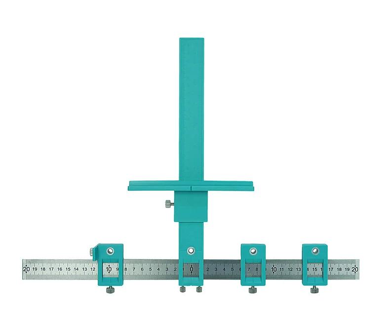 Линейка используется при ремонтных работах, разметке материалов для компоновки и копирования, переноса, стыковки сложных форм и профилей. Инструмент состоит из четырех линеек с прорезями, соединенных четырьмя винтовыми фиксаторами. Передвигая линейки относительно друг друга при отпущенных фиксаторах, можно легко сформировать нужную фигуру, после чего просто зафиксировать их положение.