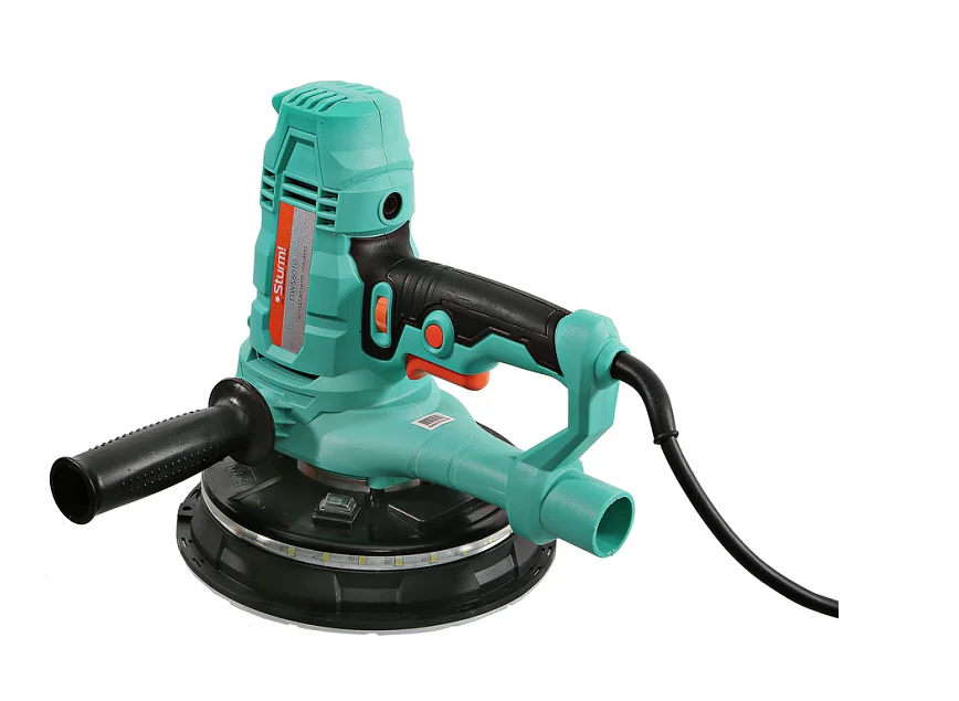 Sturm DWS6010 — универсальная машина для шлифовки стен. Предназначена для эффективной обработки гипсокартонных панелей, стен и потолков. Модель оснащена производительным 1000 Вт электромотором, гарантирующим достаточный запас по мощности даже при интенсивных нагрузках и длительной работе. Диаметр шлифовальной подошвы в 175 мм обеспечивает оптимальный баланс между производительностью и маневренностью, что особенно важно при обработке как больших площадей, так и труднодоступных мест. Наличие функции регулировки скорости вращения подошвы в диапазоне от 1300 до 2200 об / мин дает возможность пользователю адаптировать инструмент под конкретные условия, позволяя с максимальным качеством производить выравнивание поверхностей. Мягкие обрезиненные накладки на корпусе обеспечивают надежность хвата и лучший контроль в процессе работы. Встроенная светодиодная подсветка эффективно выявляет неровности на обрабатываемой поверхности и повышает комфорт при работе в условиях с недостаточным освещением. Длинный четырехметровый сетевой кабель способствует свободе передвижения, гарантируя рабочий охват до 50 м² без использования вспомогательного сетевого удлинителя. В зависимости от пожеланий пользователя к шлифмашине можно подключить строительный пылесос, либо использовать пылесборник, входящий в штатную комплектацию.