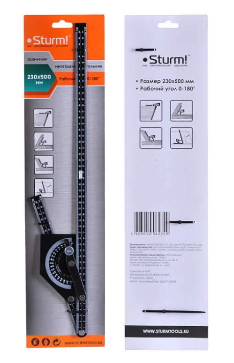 Размер 230 х 500 мм. Усиленная конструкция из высококачественной закалённой стали обеспечивает длительный срок эксплуатации. Окрашен для защиты от коррозии. Встроенный транспортир значительно расширяет функционал инструмента.