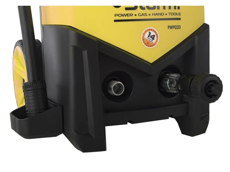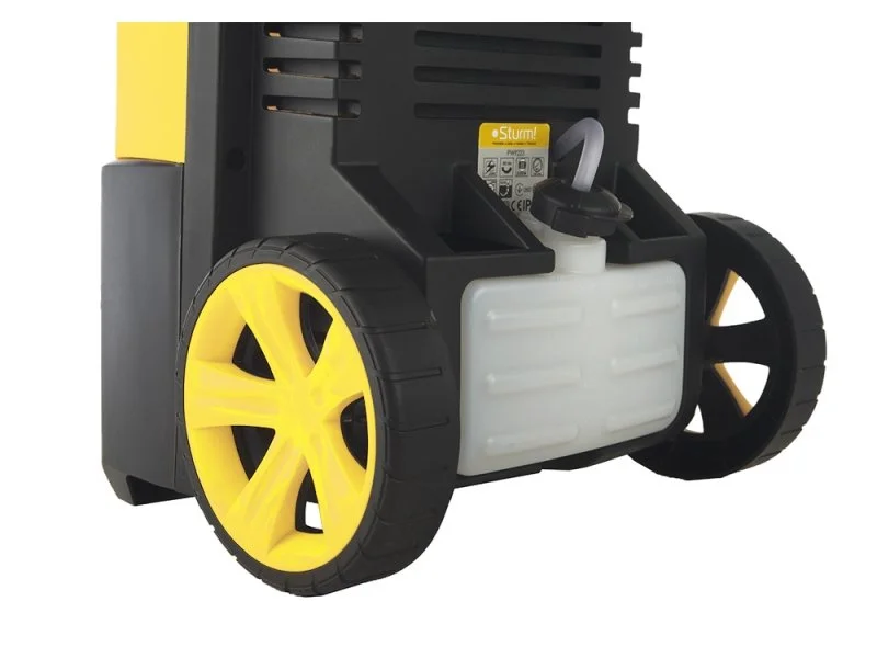 Мойка высокого давления Sturm PW9223 - мощное, относительно компактное, удобное в эксплуатации устройство бытового уровня. Предназначено для очистки транспортных средств, ухода за приусадебными территориями, мойки поверхностей из различных материалов. Оснащена бачком пенообразователя емкостью 1 л. Синхронный электродвигатель мощностью 2300 Вт, установленный на мойке Sturm, обеспечивает производительность до 460 л/час. Агрегат оборудован алюминиевой помпой высокого качества, позволяющей осуществлять функцию самовсасывания(1+-0,5м). Подача воды осуществляется с рабочим давлением 132 бар. Степень защиты мойки Sturm относится к IPX 5. Для удобства в работе агрегат оснащен транспортировочными колесами, шлангом высокого давления длиной 5м. Аппарат оснащен фильтром тонкой очистки, предотвращающим попадание загрязненной воды в насос.