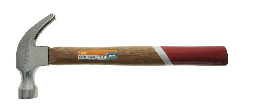 Молоток-гвоздодер, 450 г, кованый боек, деревянная рукоятка Sturm! 1010-82-WD0450