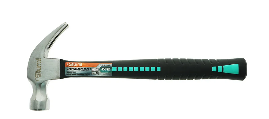 Молоток-гвоздодер, 450 г, кованый боек, обрезиненная рукоятка Sturm! 1010-62-FR0450