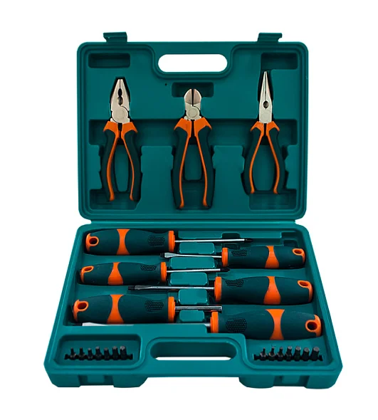 В наборе 23 предмета; Материал: хромованадиевая сталь; Эргономичные двухкомпонентные рукоятки; Твердость стали: 54-56 HRC; Антискользящее покрытие рукояток;