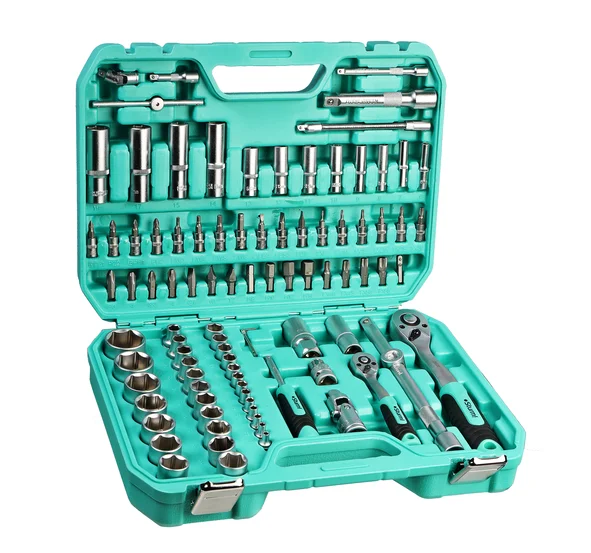 Предметы в наборе изготовлены из хромованадиевой стали, обеспечивающей долговечность инструментов даже при усиленных нагрузках. Трещотка имеет механизм с 72 зубьями для плавного хода и комфортной работы в труднодоступны местах. Усиленный кейс с металлическими замками и петлями уверенно защитит ваши инструменты от внешних воздействий..